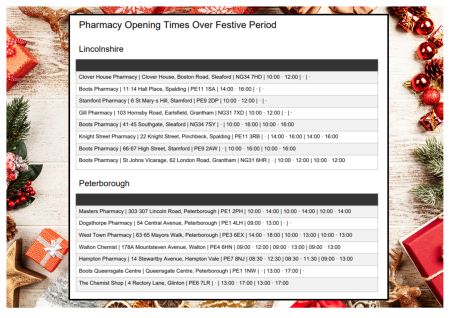 We will be offering a full service in the lead up to Christmas, including Christmas Eve.